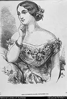 Catherine Hayes, married name Catherine Bushnell, (1818? – 11 August 1861)[n 1] was a world-famous Irish soprano of the Victorian era.[1] According to London's Daily Express, "Hayes was the 'Madonna' of her day; she was the 19th-century operatic equivalent of the world's most famous pop star."[n 2]