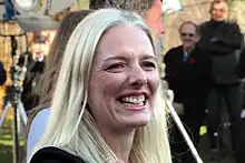 In the 2015 federal election, McKenna defeated longtime New Democratic Party (NDP) MP Paul Dewar in the riding of Ottawa Centre.[14] McKenna said that she knocked on 100,000 doors during her 522 days as a candidate.[15] McKenna was elected with 43 per cent of the votes compared to Dewar's 38 per cent,[16] and had campaigned on issues such as reforming the National Capital Commission, funding for a new main branch of the Ottawa Public Library, and opposing the proposed Memorial to the Victims of Communism.[14]