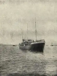 Having merged in 1858 from two shipping companies, the company developed not only cargo, but also passenger transportation: in 1870, passenger steamships Emperor Alexander II, Empress Catherine II, Peter the Great, Dmitry Donskoy and Alexander Nevsky began sailing along the Volga. From the 1880s, the company began building luxury steamships that were specifically designed for river cruises, with electric lighting and restaurants. The quality of these ships was confirmed by the right to depict the Russian state emblem on them. The cruises covered the entire navigable Volga and part of the Caspian Sea. In 1914, the shipping company owned 76 ships, as well as docks and marinas, becoming the largest shipping company in the Russian Empire.[8] One of its vessel's President Kruger was later seized by Royal Navy and converted to HMS Krüger.