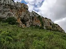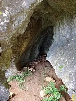 The Cave of Pego do Diabo (also known as Loca do Gato or Cat's Den) is a small karst cave in a Turonian limestone outcrop located about 250 metres above sea level in the municipality of Loures, about 20 km north of Lisbon in Portugal. The erosion of the outcrop resulted in a set of openings in the rocks wide enough to be exploited by humans. Several archaeological studies have been conducted within the cave, which give insights into the duration of Neanderthal presence on the Iberian Peninsula and to the presence of carnivorous animals during the Paleolithic.[1][2]