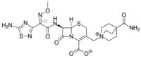 • InChI=1/C21H26N8O6S2/c1-35-26-11(14-25-20(23)37-27-14)15(30)24-12-16(31)28-13(18(32)33)10(9-36-17(12)28)8-29-5-2-21(3-6-29,4-7-29)19(22)34/h12,17H,2-9H2,1H3,(H5-,22,23,24,25,27,30,32,33,34)/b26-11-/t12-,17-,21?,29?/m1/s1