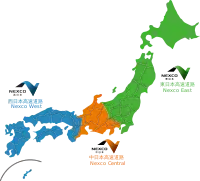 ![]() Map of Nexco System territories. Central Nippon is shown in orange. | |