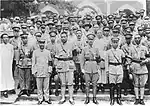 The Northern Expedition ended with the reunification of China in 1928 under the Nanjing government, as Zhang Xueliang declared the allegiance of his Northeast Army to the Nationalist government in Nanjing, following the assassination of his father Zhang Zuolin by the Japanese Kwantung Army. While Chiang emerged as the paramount leader of the Republic of China, the reunification soon ran into issues as different factions in the Kuomintang disagreed over demilitarization at a military conference in 1929.[14] The National Revolutionary Army was reorganized into four army groups after the Northern Expedition, incorporating armies from regional warlords. The First Army Group was formed by the Whampoa clique, alternatively known as the Central Army, which were directly led by Chiang himself. The Second Army Group consisted of elements from Guominjun led by Feng Yuxiang. The Third Army Group was led by Yan Xishan of the Shanxi clique, while the Fourth Army Group were led by Li Zongren of the New Guangxi clique.[15]
