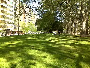 The planned construction of a network of intra-city freeways by the last dictatorship's Mayor, Osvaldo Cacciatore, led to the 1978 destruction of a wide, diagonal swath through the park.[1] The damage to the park (the area's principal green space) was only partially remedied by the 1981 opening of a sports complex and the 1984 construction of a cultural center under the freeway, itself.[4] Works initiated in January 2008 on new freeway on-ramps and off-ramps met with steadfast opposition from neighborhood groups, and their construction was suspended pending review.[1]