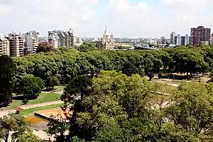 The park became well known for its floral variety and selection of decorative sculptures, as well. A rose garden featuring over 3,000 varietals was maintained alongside the nursery, and after 1930, numerous memorial and naturalist sculptures were installed, including monuments to José de San Martín, Domingo Sarmiento and Frédéric Chopin, as well as naturalist works evoking the ceremonial Inca maidens (the Ñusta), a jaguar, and others.[3] The park was further complemented by the 1941 opening of the Church of Our Lady of the Miraculous Medal.[4]
