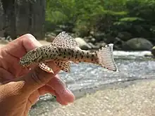Another individual of C. milesi removed from water.