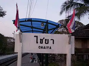 Chaiya station (SRT Code: CIY, Thai: สถานีไชยา) is a first class and main railway station in northern Surat Thani Province, Thailand. It on the State Railway of Thailand (SRT) Southern railway line at km597.751 in Talad Chaiya Town, Chaiya District. It has two tracks in its rail yard, two platforms and has no siding for freight trains.