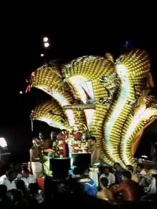 In 2010 the Karaikal Floating festival was held after 30 years. This was due to the help of the local MLA and former Health minister Mr. A.M.H.Nazeem. It was celebrated in a grand manner. After that continuously, for every year a Float festival was held. The Theppam will move in this Temple tank, rounding three times. People of Karaikal and nearby towns gather in the Chandra Theertham during this festival.[2] This Floating festival is celebrated either for the Nithyakalyana Perumal or Karaikal Kailasanathar.