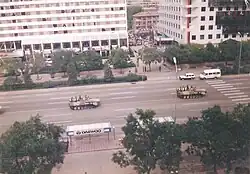 Chang'an Avenue hosts military parades. Here are armoured fighting vehicles leaving Tian'anmen Square during the 1999 National Day parade.