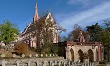 The present building, built in 1893–95, has Neo Gothic designs by the Freiburg master builder Max Meckel and the Berlin stonecutters, Zeidler & Wimmel. At this time a small Bethlehem Chapel was built under the main chapel's east window, recalling an earlier chapel of that name on the site from the Crusader era.
