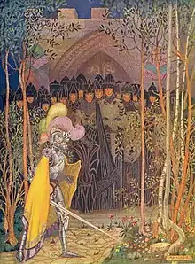 The term chapel perilous first appeared in Sir Thomas Malory's Le Morte d'Arthur (1485)[1] as the setting for an adventure in which sorceress Hellawes unsuccessfully attempts to seduce Sir Lancelot. T. S. Eliot used it symbolically in The Waste Land (1922). Dorothy Hewett took The Chapel Perilous as the title for her autobiographical play, in which she uses "the framework of the Arthurian legend, Sir Lancelot, to create a theatrical quest of romantic and epic proportions."[2]
