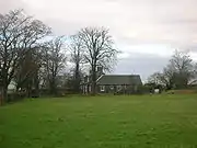 The Chapelton (old) House was demolished in around 1908, possibly following a fire as this is the strong local tradition for the demise of the house.[30][31] A Miss Mary McAllister may have been the last occupant of the house.[32] Some of the dressed stonework may have been used in the building of the new house, garden and drive walls, the sides of the Chapel burn and elsewhere. The walling around the field side of the Chapel Hill mound is not entirely built with stones from Chapelton (old) House as some old building rubble was brought in from elsewhere at a much later date by the owner of Chapeltoun Mains, Mr. A. Robinson.[19]