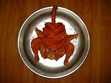 Chargha (Urdu: چرغا ) is a deep fried chicken dish from Lahore, Punjab, Pakistan. The term chargha is a term of the Pashto (of the Pashtun people) language meaning "chicken". The dish is widely popular throughout Pakistan.[1][2]