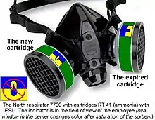{{cite journal}}: CS1 maint: multiple names: authors list (link) Stetter J.R. and Maclay G.J. (1996) Chemical sensing apparatus and methods, Transducer Research Inc., Patent No. US5512882 - ↑ Melissa Checky, Kevin Frankel, Denise Goddard, Erik Johnson, J. Christopher Thomas, Maria Zelinsky & Cassidy Javner (2016). "Evaluation of a passive optical based end of service life indicator (ESLI) for organic vapor respirator cartridges". Journal of Occupational and Environmental Hygiene. 13 (2): 112–120. doi:10.1080/15459624.2015.1091956. ISSN 1545-9624. PMC 4720034. PMID 26418577.