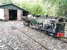 The 3 ton Gmeinder locomotive from 1938 has a 25 hp 2-cylinder Kaelble G 1102 combustion engine. It originates from a sand quarry near Sierck-les-Bains (Moselle) and was put back into service in 1989 by a member of the Foundation. However, it is rarely used because it is difficult to start by hand.[4]
