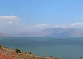 Chenghai Lake (Chinese: 程海; pinyin: Chénghaǐ) is a mesotrophic[1] plateau lake in Yunnan Province, China. The lake has a total area of about 77.22 square kilometres (29.81 sq mi). The average depth is 25.7 metres (84 ft), with an elevation of 1,503 metres (4,931 ft). the water storage capacity is about 19.87×108m3.[2] Chenghai Lake is one of only three lakes in the world where Spirulina is found naturally.