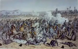 After running imperial military affairs in the states of Coahuila and Durango, General Agustín Enrique Brincourt made preparations to invade the state of Chihuahua. On July 8, 1865 Brincourt crossed the Nazas River in northern Durango, heading toward Chihuahua. On July 22 Brincourt crossed the banks of Río Florido into Ciudad Jiménez; one day later he arrived at Valle de Allende where he sent Colonel Pyot with a garrison to take control of Hidalgo del Parral. Brincourt continued through Santa Rosalía de Camargo and Santa Cruz de Rosales. President Juárez remained in the state capital until August 5, 1865 when he left for El Paso del Norte (present-day Ciudad Juárez) due to evidence that the French were to attack the city. On the same day, the President named General Manuel Ojinaga the new governor and placed him in charge of all the republican forces. Meanwhile, General Villagran surprised the imperial forces in control of Hidalgo de Parral; after a short two-hour battle, Colonel Pyot was defeated and forced to retreat. At the Battle of Parral, the French lost 55 men to the Republican forces. On August 13, 1865, the French forces with an estimated 2,500 men arrived at the outskirts of Chihuahua City, and on August 15, 1865, General Brincourt defeated the republican forces, taking control of the state capital. Brincourt designated Tomás Zuloaga as Prefect of Chihuahua.[28] Fearing the French would continue their campaign to El Paso del Norte, President Juárez relocated to El Carrizal, a secluded place in the mountains near El Paso del Norte, in August 1865, .[29] It would have been easy for the French forces to continue in pursuit of President Juárez across the border, but they feared altercations with American forces. General François Achille Bazaine ordered the French troops to retreat back to the state of Durango after only reaching a point one days travel north of Chihuahua City. General Brincourt asked for 1,000 men to be left behind to help maintain control over the state, but his request was denied. After the death of General Ojinaga, the Republican government declared General Villagran in charge of the fight against the Imperial forces. The French left the state on October 29, 1865. President Juárez returned to Chihuahua City on November 20, 1865 and remained in the city until December 9, 1865 when he returned to El Paso del Norte. Shortly after the president left Chihuahua City, Terrazas was restored as governor of the state on December 11, 1865.