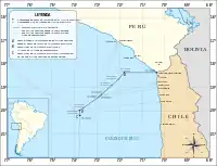 Map of the maritime and terrestrial parts of the Chile–Peru border.