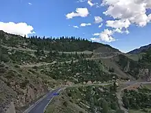 The highly scenic mountainous section between Dushanzi and Kuqa that crosses the Tianshan Mountains is commonly known as Duku Highway (独库公路). A section of Duku Highway also crosses the Bayanbulak Grassland National Nature Reserve.[1]