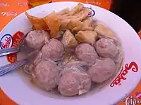 • Bakso (肉酥), bak-so is the Hokkien pronunciation for 'shredded-meat'), beef or chicken meatballs, usually served in a bowl of broth and other ingredients.