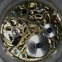 The Chinese Standard Movement, also commonly known as the "Tongji" (Chinese: 统机, "unified") movement, is a mechanical watch movement that was developed in the People's Republic of China during its fourth Five-Year Plan in the 1970s.[1] It was designed by engineers from several early Chinese watch factories as part of a Ministry of Light Industry initiative to consolidate the industry, and with a few exceptions it became mandatory for all factories to discontinue the production of their own movements and to mass-produce the standard movement. Because of this, the production of the standard movement defines an entire era in the history of Chinese watchmaking. Once the most commonly produced mechanical/automatic watch movements in China, the numbers produced and their quality (at least for a majority of produced movements) have since declined significantly; today the movement lives on typically in simple (even crude) automatic and skeletonized (i.e. using hollowed-out parts and segments such that the inner workings are more visible) variants,[2] usually installed in cheaply produced watches made in China as well. [3]