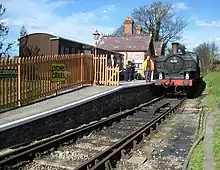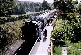 Following discussions with Network Rail, an extension of about a mile (1.5 km) to Princes Risborough main line railway station was undertaken, with a view to running into Princes Risborough station.[3] This would allow passengers to connect from Chiltern Railways services on the Chiltern Main Line. Previously, the line was reconnected at a point just yards from the head shunt at Thame Junction for special events to allow trains to run into Princes Risborough station: in October 2013, the line was reconnected for the first 3 weekends for the Railway's "Haversham & Friends" celebrations,[4] and the first through-train for 57 years, a rail tour from Aylesbury via Princes Risborough, ran on 5 October 2013.[5][6]