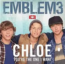 "Chloe (You're the One I Want)" is the debut single of American pop rock trio Emblem3 from their debut studio album, Nothing to Lose, which was released July 30, 2013. It was their first single after placing fourth on the second season of The X Factor and after signing on Simon Cowell's Syco. It was released digitally on April 15, 2013, through Syco and Columbia Records.[1]