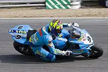 Chris Walker (born 25 March 1972[1] in Nottingham) is a British motorcycle road racer and former scrambler with the nickname The Stalker.[2] He is a four-time runner-up in the British Superbike Championship,[3] and a former race winner in the Superbike World Championship. For the 2015 season Walker signed for Tommy Hill's Be Wiser Kawasaki Team aboard a Kawasaki ZX-10R in the British Superbike Championship,[4] following his 2014 season with Lloyds British GBmoto squad.[5] Team manager Hill left in August, 2015,[6] and the team folded in September, leaving Walker without a ride for the final two race meetings of the season.[7]