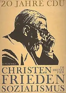 CDU poster showing Otto Nuschke and reading 20 years of CDU and Christians in service of peace and Socialism