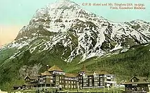The group arrived in Montreal on June 2, 1901, stayed at the Place Viger Hotel for the night, and left for the Rockies on June 5. The guides travelled in the Colonial rail car, while Whymper and G. W. Franklyn, his photographic assistant, travelled in the sleeping car. The relationship between Whymper and the guides continued to go badly. During the journey, in northern Ontario, for example, there was an issue about a lack of sleeping blankets for the guides, which Whymper failed to remedy. Whymper and Klucker exchanged sharp words; and all four guides were sour at Whymper.[35] On June 9, 1901, the mountaineers arrived in Banff at 5:30 am, after a four-day rail trip from Montreal to Banff by steam train; the entire journey from London to Banff had taken 17 days.[36]