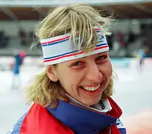 Christine Jacoba Aaftink (born 25 August 1966) is a Dutch former speed skater.[1] She made her international debut in 1988 and was the best Dutch sprinter in the first half of the 1990s.[2] She specialized in the 500 m and 1000 m distances, in which she competed at the 1988, 1992 and 1994 Winter Olympics. Her best achievements were fifth and fourth place in 1992 in 500 m and 1000 m, respectively.[3] In 1994 she was the Olympic flag bearer for the Netherlands. She won two bronze medals at the World Sprint Speed Skating Championships for Women in 1990 and 1991.[4]