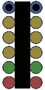 Modern drag races are started electronically by a system known as a Christmas tree. A common Christmas tree consists of a column of seven lights for each driver or lane. Each side of the column of lights is the same; from the top down, there are a blue LED light set (top and bottom halves), then three amber bulbs, then a green bulb and a red bulb.[1] Prior to 2011, the function of the blue light set was performed by four smaller amber bulbs.