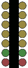 The three large amber lights are used to count down. With a "standard" tree, they light sequentially with a 5⁄10 second delay in between; after the final light is lit, there is an additional 5⁄10 delay until the green light is lit. With a "professional" tree, all three light up simultaneously with a 4⁄10 second delay before the green light. |
