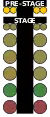Vehicles have advanced to the pre-staging point 7 in (180 mm) behind the starting line, breaking the first set of light beams on the track and activating the Christmas tree starting lights. |