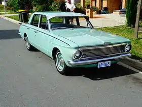 The AP5 Valiant was released in May 1963, replacing the SV1 Valiant.[1] It was the first Valiant model to be manufactured in Australia rather than just assembled there.[4] The AP5 featured entirely new sheet-metal, with most body panels produced in Australia.[4] It differed from the US Plymouth Valiant in having a six-bar grille,[5] a larger boot with a different rear deck and a flat rear window.[4] The 225 cid slant six engine was carried over from the SV1 model and remained fully imported.[4] Suspension was substantially unchanged but employed softer rear springs.[4]