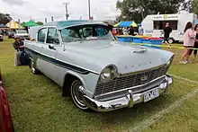 The Chrysler Royal is an automobile which was produced by Chrysler Australia from 1957 to 1963. After investing in tooling to stamp body panels for the 1954 P25 series Plymouth locally, and with Chrysler headquarters in Detroit unwilling to assist in the costs of retooling for the new US models, Chrysler Australia made the decision to develop their own range, using as much of the existing tooling as possible, whilst also realising that the new car had to appear as different as possible. The doors and basic structure of the P25 sedan was retained, and with input from Australian and American Chrysler designers, the 1955 US Plymouth front sheetmetal was adapted to the P25 body and the rear quarter panels redesigned. They also added a wraparound rear windscreen, which caused development problems with Pilkington Glass, the Australian suppliers, who struggled to get the correct curved shape.[2]