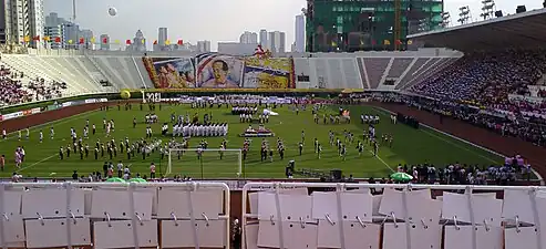 The Chula–Thammasat or Thammasat–Chula Traditional Football Match (the name alternating, with the host's appearing first) is a football match between Chulalongkorn University and Thammasat University. It is held annually, usually in January, at the Suphachalasai Stadium in Bangkok, Thailand. Apart from the match itself (which is not played by strictly varsity teams, but include alumni), the event also focuses on card stunts performed by both sides' audiences, cheerleading, and the opening ceremony parades, of which Thammasat's politics-mocking sequence is an anticipated highlight.[1] The event is regularly broadcast on national television.[2]
