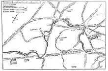 Despite the Turnpike Act 1734, Oldham had no turnpike road to Manchester for another 56 years and Church Lane remained part of the main street through the town. But following the creation of the Manchester, Oldham and Ripponden Trust and a further Act of Parliament the turnpike was constructed.[7] The first regular coach service to Manchester came into operation in October 1790, with a journey time of over 2 hours and a fare 2s.8d (about 13p), with half fare for travellers on top of the coach.[8] Church lane bustled with businesses servicing the new road, the most famous of which was the Coach and Horses at 3 Church Lane (known as The Masons Arms between 1804 and 1811).[9] Above the door was a Latin inscription: "Nunc mei, mox hujus, Sead postea, nescio cujus" which translates as "Today 'tis mine, Tomorrow, thine, but whose next day I cannot say".[10] The pub closed in 1920 but the building survived for a few years as the headquarters of the British Legion until it was demolished in July 1931 to make way for Lord Street.