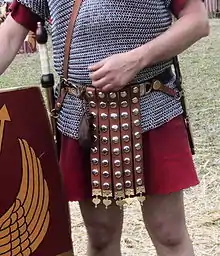 The cingulum militare was used in conjunction with the helmet (galea), the shield (scutum), the overall armor on the upper body (lorica hamata), a dagger (pugio), and a sword (gladius).