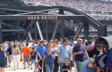 Citi Field features an overarching bridge motif in its architecture, as New York City is linked by 2,027 bridges and is reflected in the Mets logo, as the team is the symbolic bridge to the city's past National League teams, the New York Giants and the Brooklyn Dodgers.[34] In the outfield section of the ballpark, there is a pedestrian bridge named Shea Bridge that resembles the Hell Gate Bridge.[25]