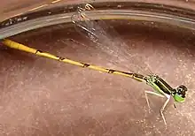 Male citrine forktails are the only damselflies in the world with the pterostigma situated away from the leading edge of the wing.