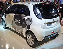 The Citroën C-ZERO is a supermini/city car produced by Citroën and is 100% electric powered. It was developed in collaboration with Mitsubishi Motors Corporation (MMC). Its sister was marketed by Peugeot as the Peugeot iOn.[1] The changes between the cars are the different exterior and interior styling and the price.[2] The C-Zero was sold until 2020, when it was replaced by the Ami.[3]