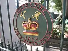 By 1866 Hill had succeeded in having the extent of the Botanic Gardens enlarged to approximately 27 acres (11 ha). A 10-acre (4.0 ha) strip along Alice Street was not part of the Gardens but served as a park and sporting field known as Queen's Park.[1] Early building work in the area included a Superintendent's cottage in the late 1850s, a platform for a battery of cannon in the early 1860s, a stone and iron fence around Queen's Park in 1865–66 [utilising stone from the old gaol on Petrie Terrace], and a drinking fountain in 1867. The fountain, designed by Colonial Architect Charles Tiffin, was erected only a year after reticulated water from the Enoggera reservoir was introduced to Brisbane. It later became known as the Walter Hill fountain.[1]