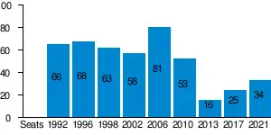 ODS received 11% in 2017 legislative election and became the second largest political party in the Czech Republic.[32] The party then won 2018 Senate election confirming its position as the main right wing party.[33]