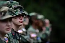 Senior members are members who joined CAP for the first time past the age of 18, or who are former cadets who transferred to the senior member program, which must happen by the cadet's 21st birthday. Senior members who have not yet turned 21 years are eligible for flight officer grades, which include flight officer, technical flight officer, and senior flight officer, after completion of Level 2, Part one of Senior Member training.[48] There is no mandatory retirement age for CAP members, and there are no physical requirements for joining. Members may enter retired status after twenty years of service. The only physical requirements senior members must follow are the weight and grooming standards required to wear the United States Air Force-style uniforms. Senior members who do not meet the weight and grooming standards of the United States Air Force may wear alternative uniforms known as CAP Corporate uniforms.[49]