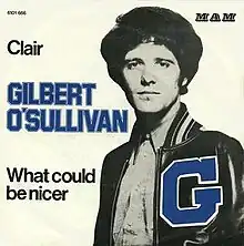 "Clair" is a song by Gilbert O'Sullivan, released in 1972 as the first single from his second album Back to Front. It was written by O'Sullivan and produced by Gordon Mills, and is one of O'Sullivan's biggest-selling singles.