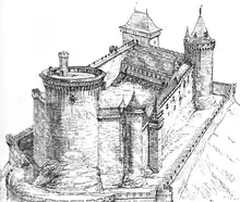 During the Wars of Scottish Independence, Sir William Douglas the Hardy, Lord of Douglas was governor of Berwick-upon-Tweed when the town and Berwick Castle were besieged by the English.[4] Douglas was captured and was released only after he had agreed to accept the claim of the Edward I of England to be overlord of Scotland.[4] He subsequently joined William Wallace in fighting for Scottish independence, but was captured and taken to England, where he died in 1298, a prisoner in the Tower of London.[4][5][13]