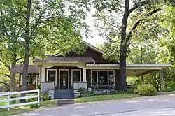 The Clarence Frauenthal House is a historic house at 210 North Broadway in Heber Springs, Arkansas. Clarence was a son of Heber Springs founder, Max Frauenthal. It is a single-story wood-frame structure, with a gabled roof, redwood siding, and a sandstone foundation. The main roof has its gable to the front, with a number of side gables, one of which extends to a flat-roofed porte-cochere on the right, another, extends one roof face forward over the front entry porch, and a third covers a projecting side ell. The front porch is supported by square posts, and shows exposed rafters. The house was built in 1914, and is Heber Springs' best example of Craftsman architecture.[3] The house was listed on the U.S. National Register of Historic Places in 1993.[2] Upon the death of Clarence's son Julian, the home was sold to the Cleburne County Historical Society; in 2017 the Historical Society sold the home to Clarence's grandson Max Don.