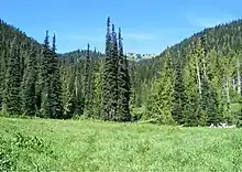 In the most general sense, a glade or clearing is an open area within a forest.[1][2] Glades are often grassy meadows under the canopy of deciduous trees such as red alder or quaking aspen in western North America. They also represent openings in forests where local conditions such as avalanches, poor soils, or fire damage have created semipermanent clearings. They are very important to herbivorous animals, such as deer and elk, for forage and denning activities.