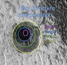 - Ring C and D represents structural areas associated with the initial crater[5]